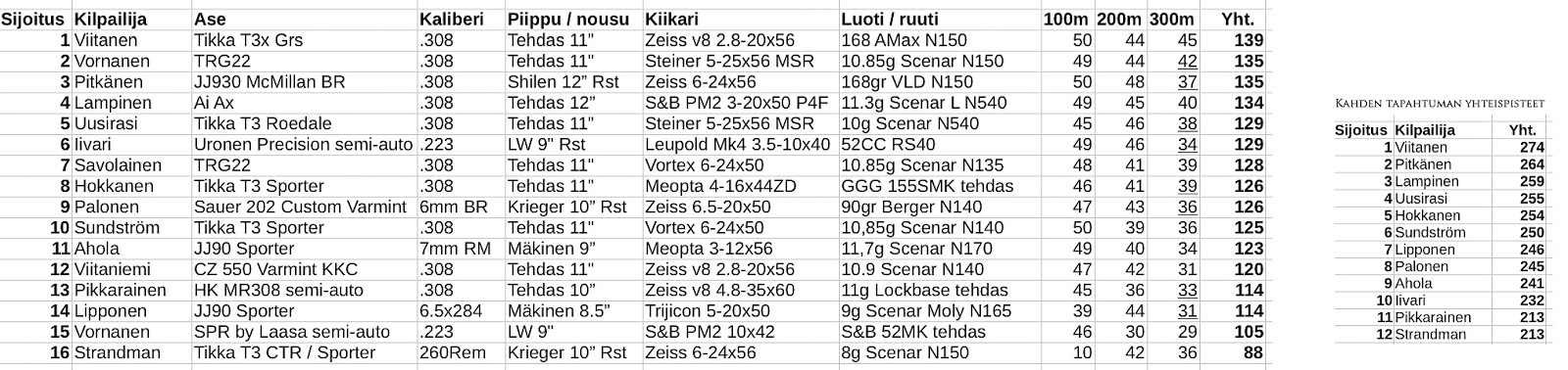 Ampumamatkat ovat 100m, 200m ja 300m. 5ls / 5min / matka tauluun, missä 10-rinki on 20mm.
